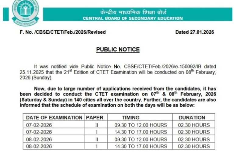 CTET 2026 : केंद्रीय माध्यमिक शिक्षा बोर्ड (CBSE) ने सेंट्रल टीचर एलिजिबिलिटी टेस्ट (CTET) की 21वीं संस्करण की परीक्षा की …