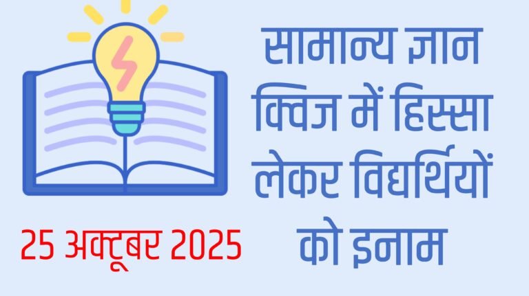 GK Quiz : सामान्य ज्ञान क्विज 25 अक्टूबर शुरू, विद्यर्थियों के लिए इनाम जीतने का भी मौका