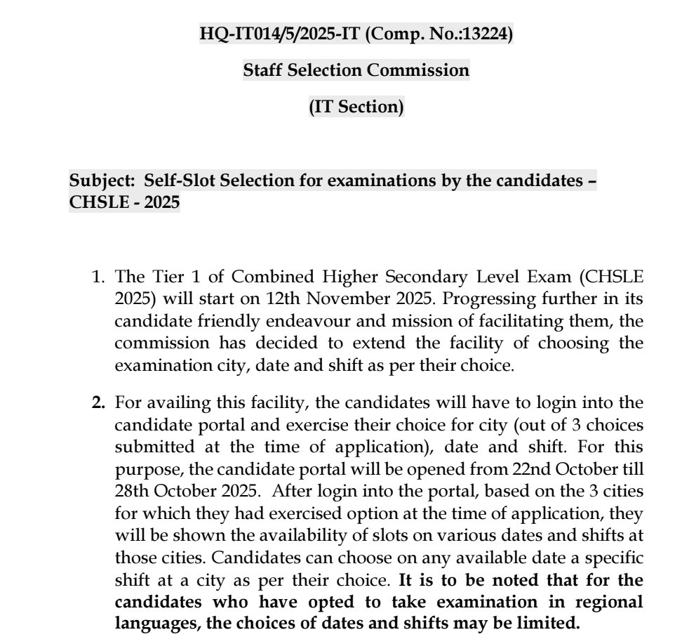 यह परीक्षा भारत की सबसे प्रतिष्ठित 10+2 स्तरीय सरकारी नौकरियों में से एक है। अतः सभी अभ्यर्थी अपने एडमिट कार्ड और परीक्षा तिथि नोटिस आधिकारिक वेबसाइट ssc.gov.in से अवश्य डाउनलोड करें।